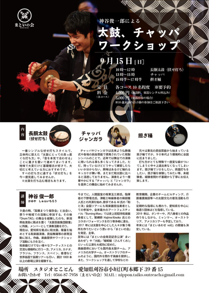 怒涛の「鼓童&まといの会」を終え、翌日は1日ワークショップを行い、
